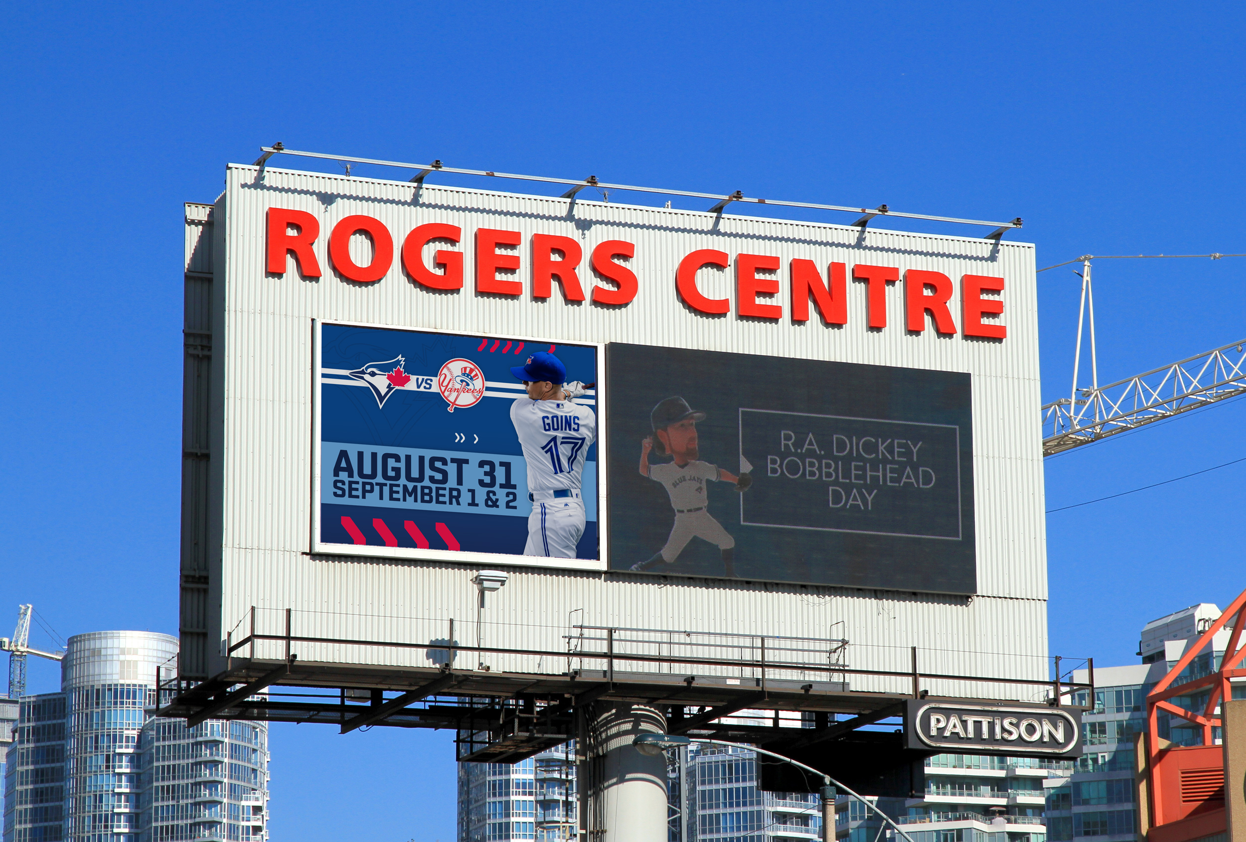 Two animated ads, a leaderboard and skyscraper to be used on web to promote the matchup between the Toronto Blue Jays and New York Yankees on August 31st, and September 1st and 2nd.